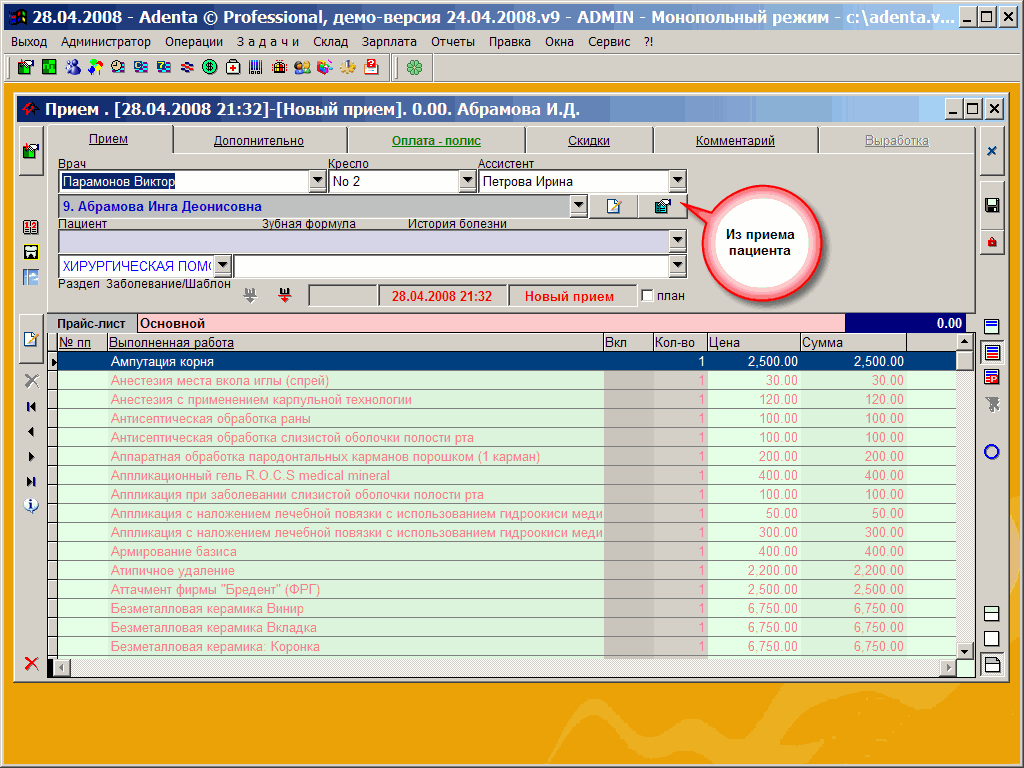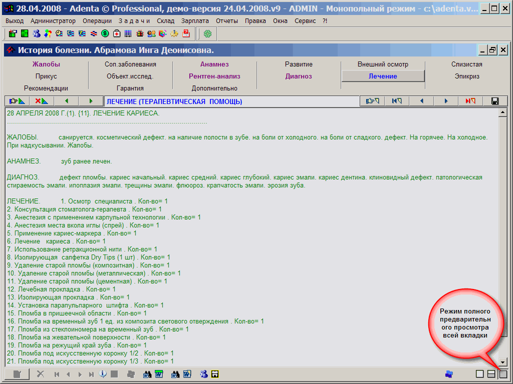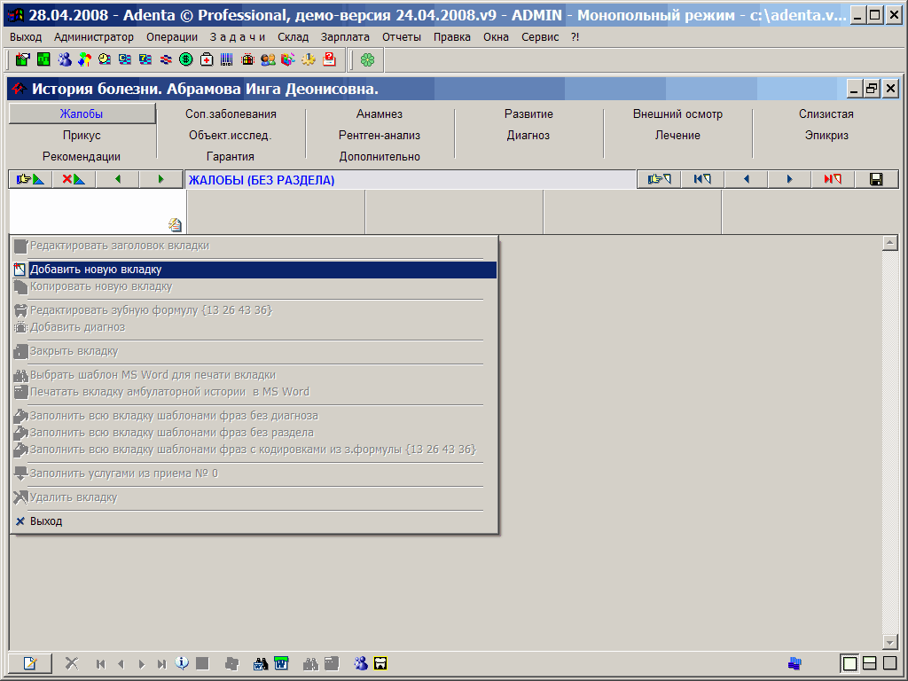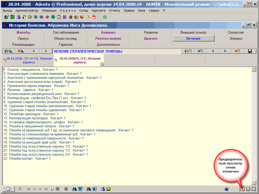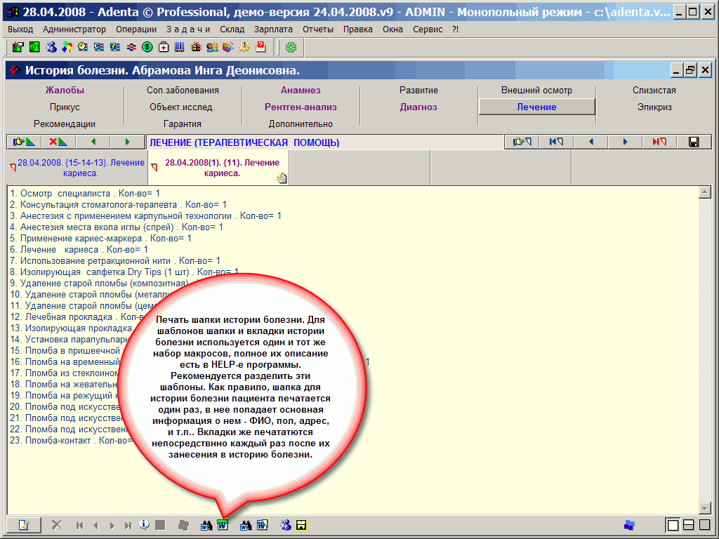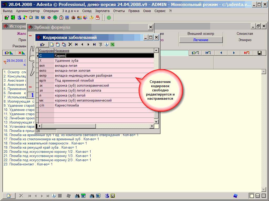 Стоматологическая компьютерная программа Адента© Профессионал, 2002-2026 Дизайн и верстка - Казачков И.Ю.©