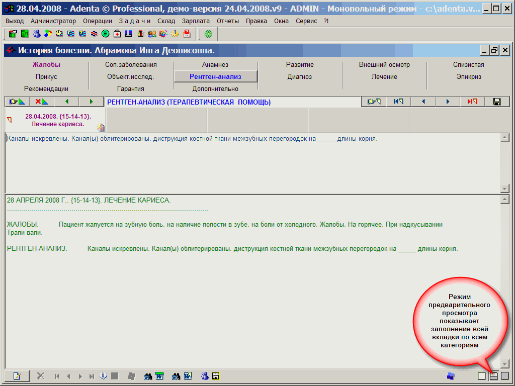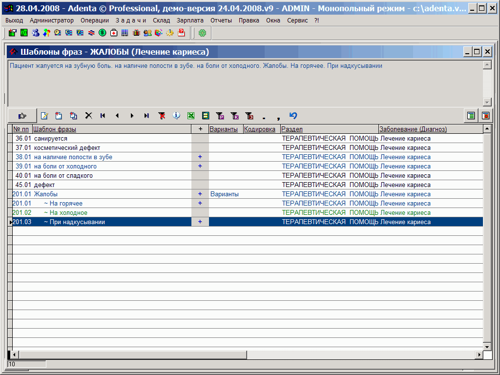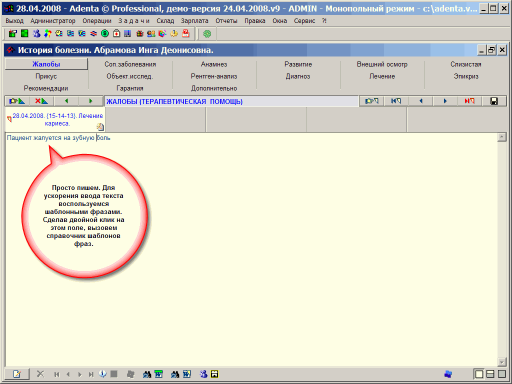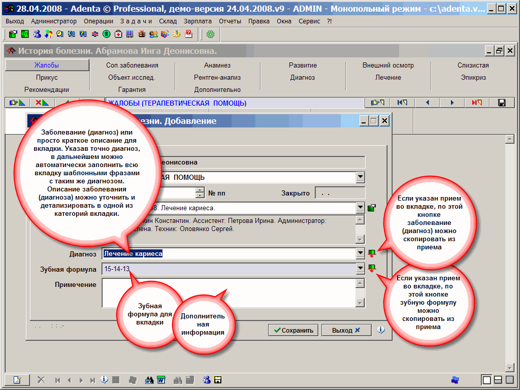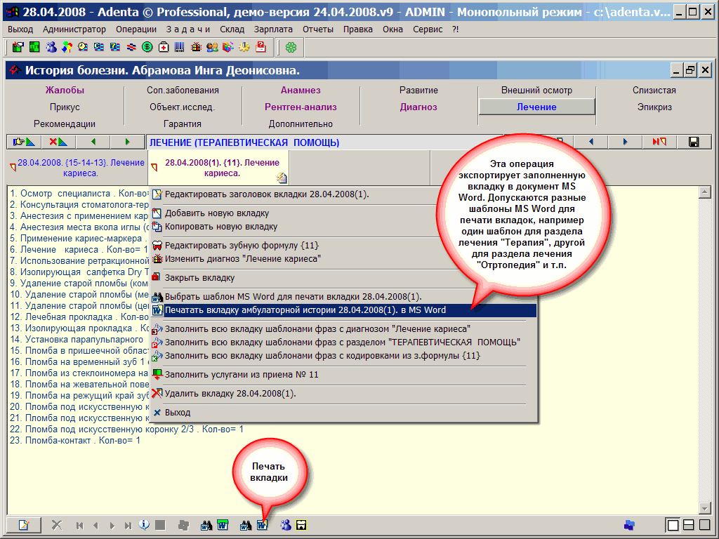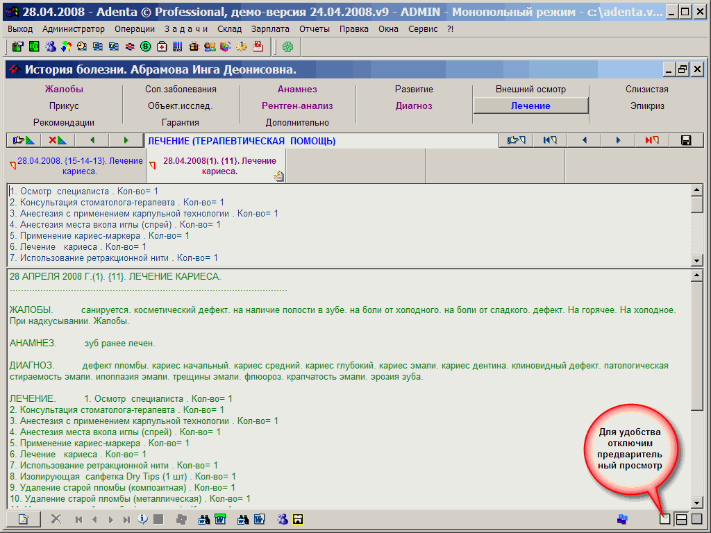 Стоматологическая компьютерная программа Адента© Профессионал, 2002-2026 Дизайн и верстка - Казачков И.Ю.©