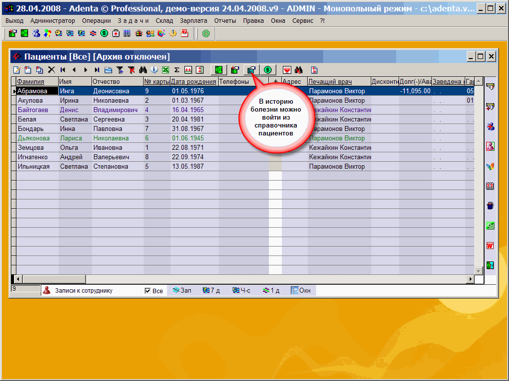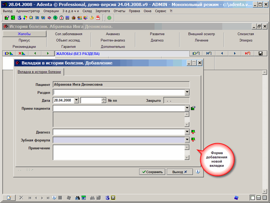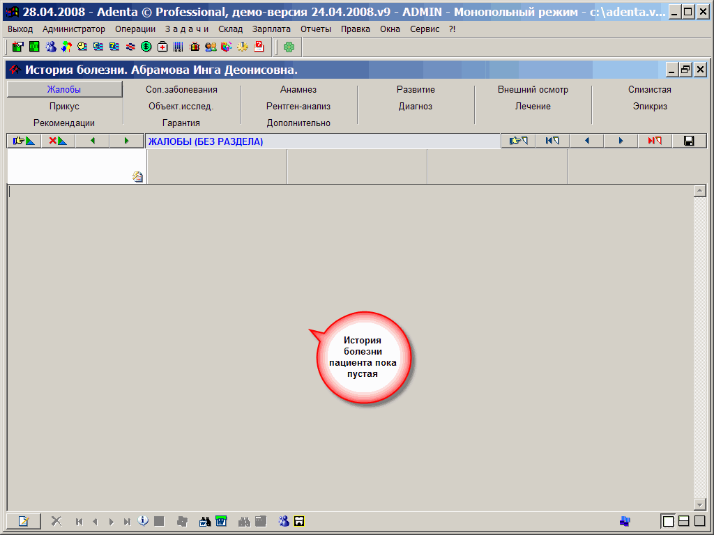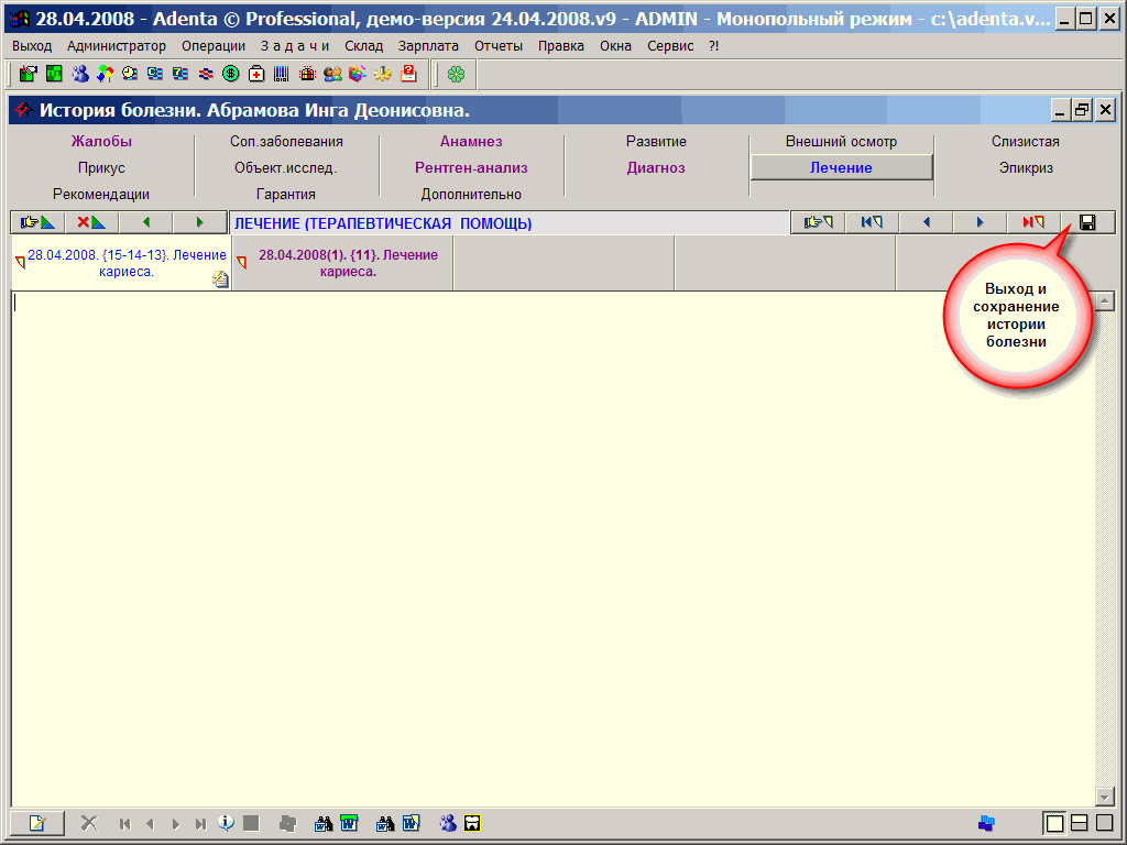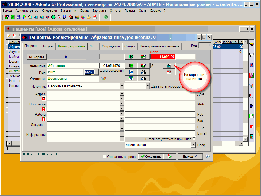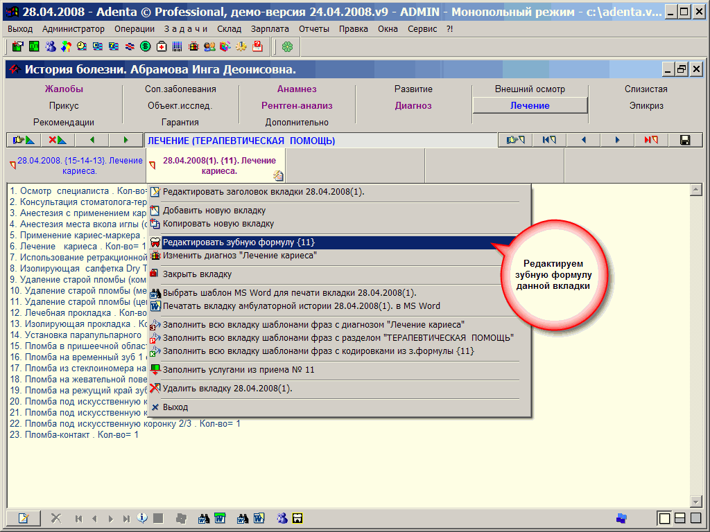 Стоматологическая компьютерная программа Адента© Профессионал, 2002-2026 Дизайн и верстка - Казачков И.Ю.©