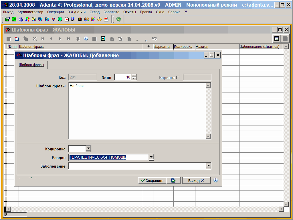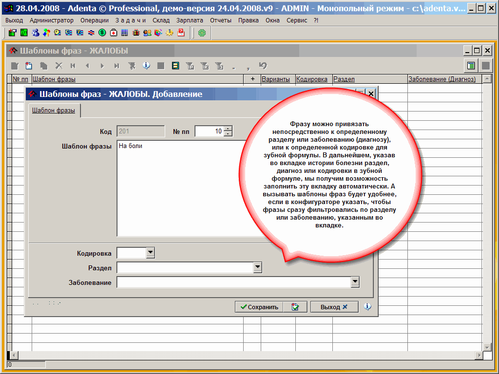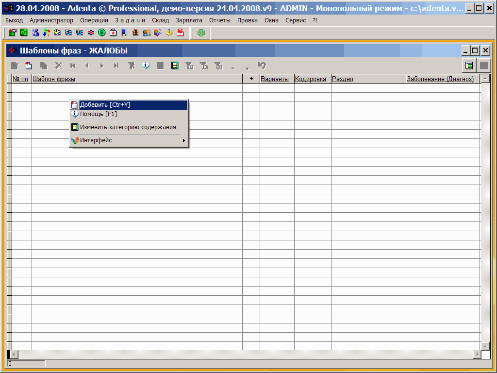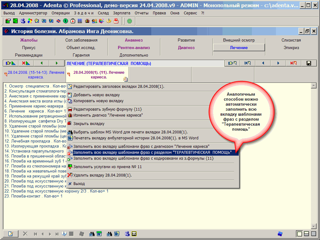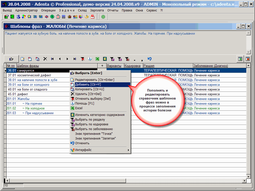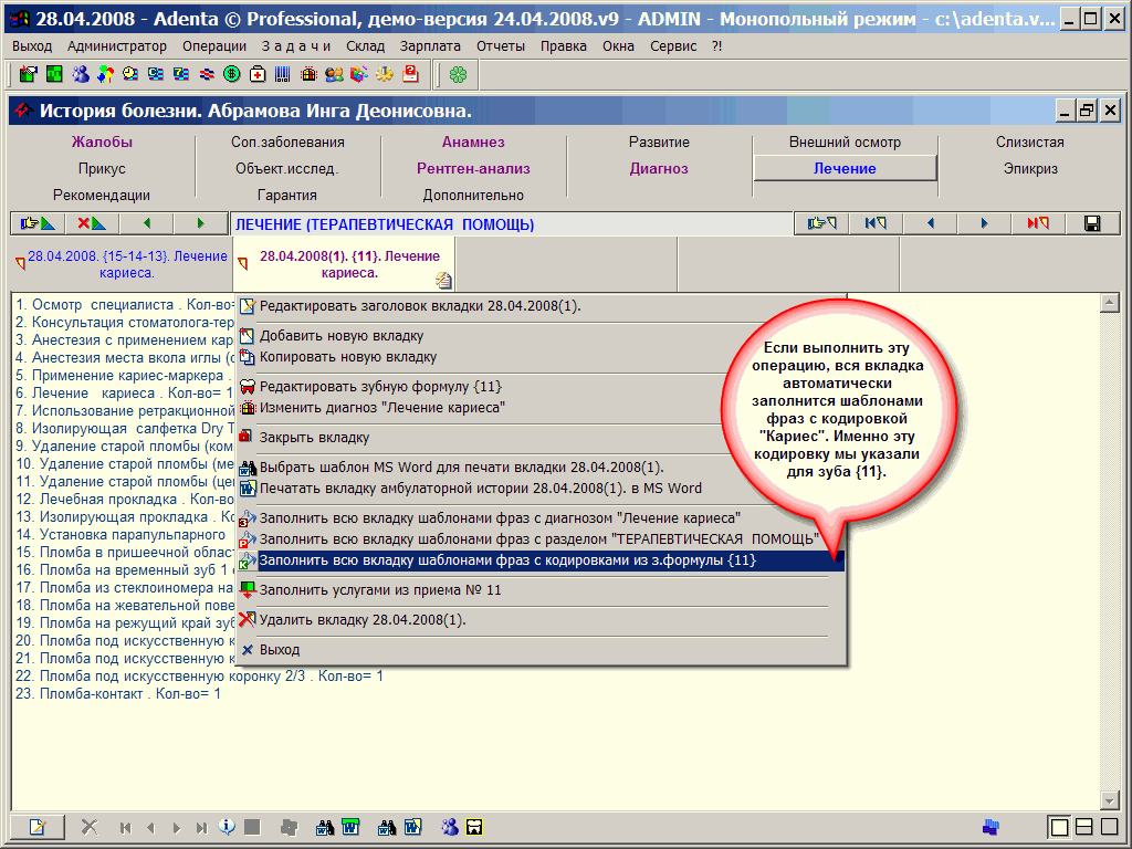 Стоматологическая компьютерная программа Адента© Профессионал, 2002-2026 Дизайн и верстка - Казачков И.Ю.©